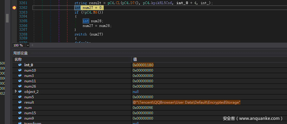这个类的代码超级长,肯定不能直接走,但是这里我想,既然它读取了资源放到了array4变量中,后面肯定要操作这个变量的,所以直接对所有操作了aray4这个变量的地方设置断点
