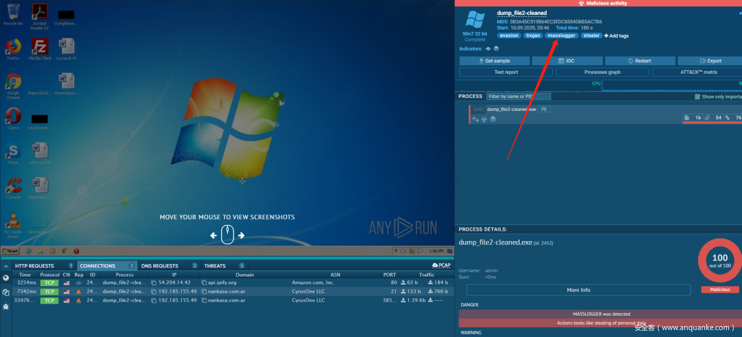 看起来并没有反调试之类的东西,而且any.run已经识别出来这是一个massLogger了。
