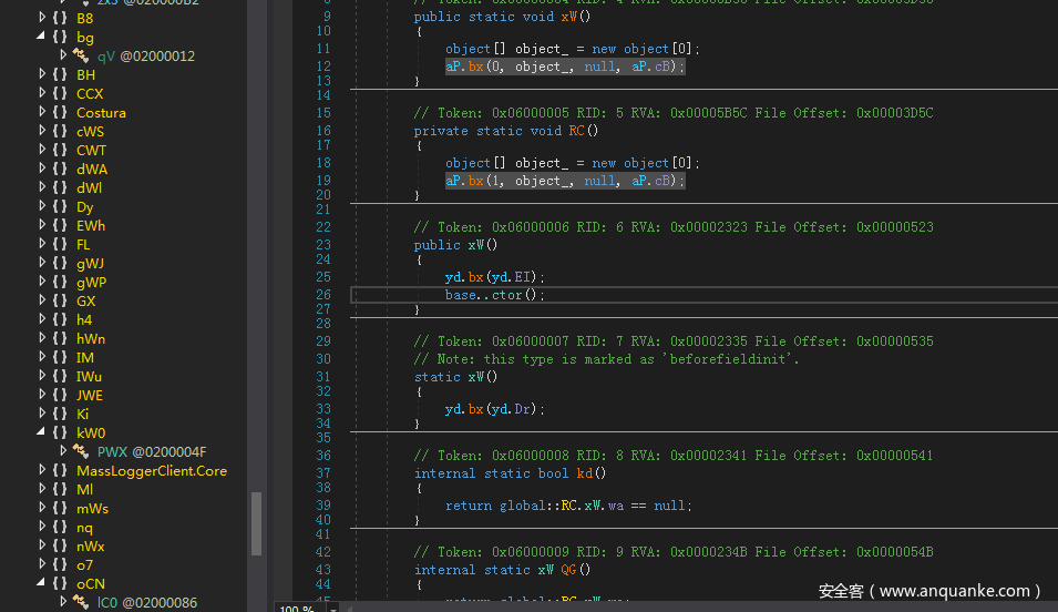 看来国外的大佬说此样本可能会取代AgentTesla的身份是有道理的,目前来看,该款木马功能比AgentTesla完善,代码结构更复杂,干扰分析的代码也很多,并且最直接的是,AgentTesla主要是通过多吃解密资源的方式加载,而MassKeLogger使用了多次非PE加载的方式,在这方面的技术已经比较成熟,这样做最直接的好处就是应该会有更好的免杀性。