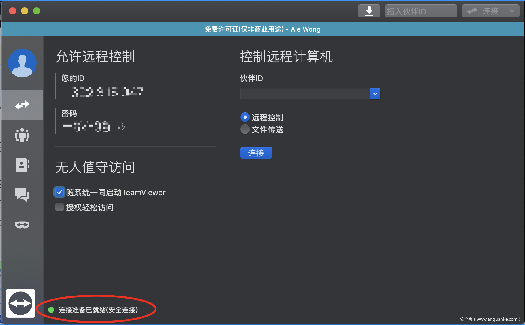 本机TeamViewer连接到KeepAlive Server,并完成与master的登录后完成客户端到TeamViewer的所有连接。这个时候还是没有执行任何密钥交换或者加密的状态。此时,TeamViewer状态栏显示本机客户端“连接准备已就绪(安全连接)”。