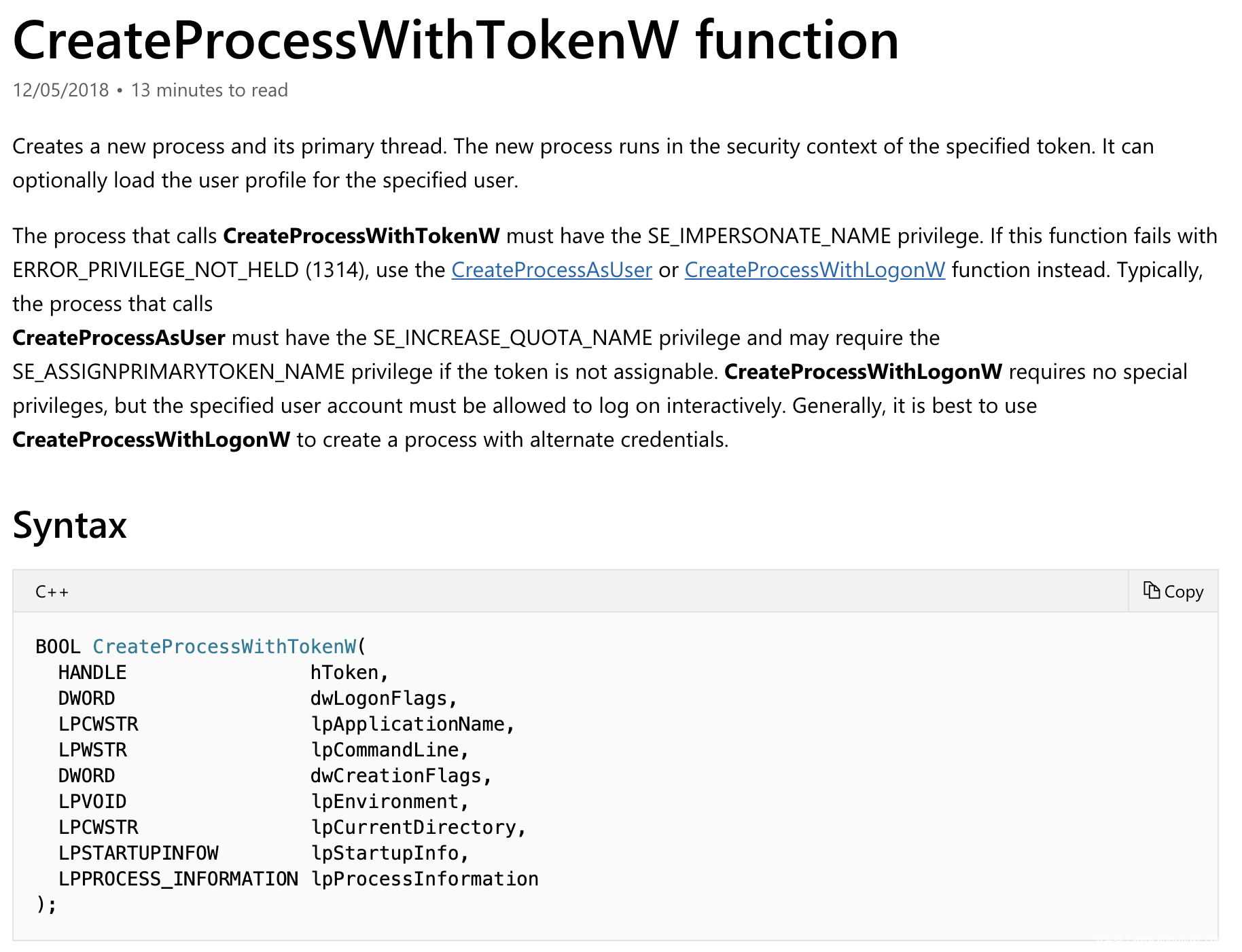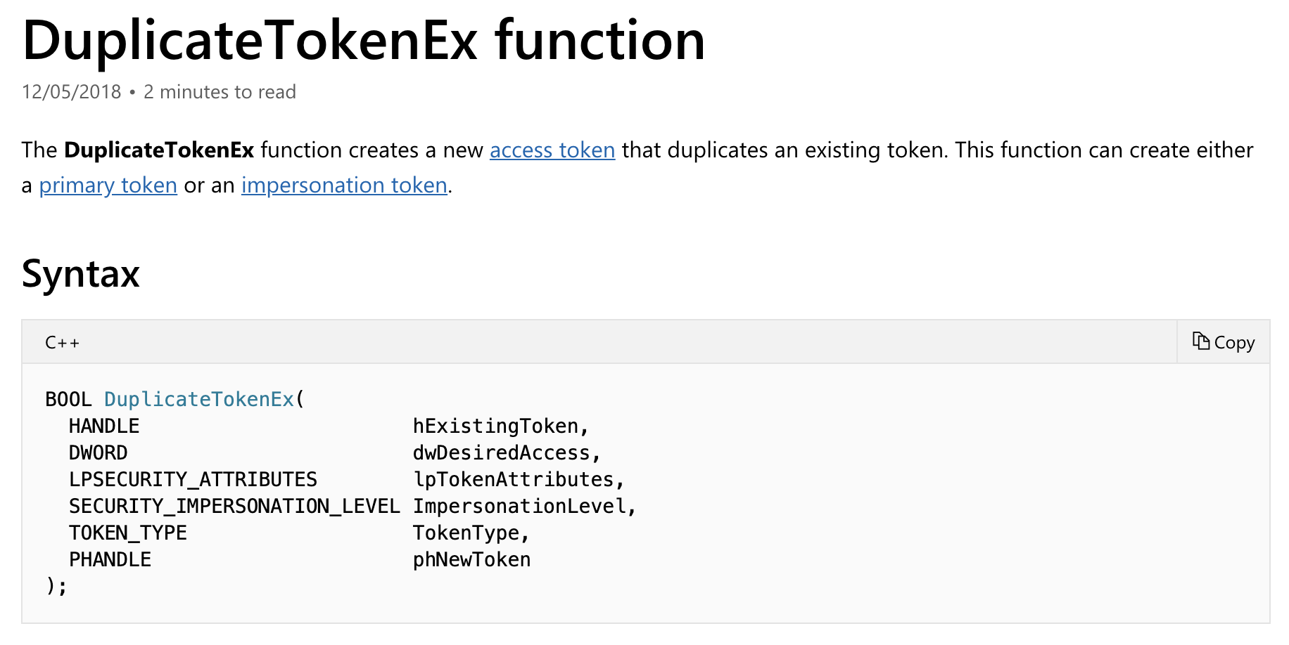 我们可以使用如下Windows API来窃取并滥用访问令牌:OpenProcess()、OpenProcessToken()、ImpersonateLoggedOnUser()、DuplicateTokenEx()以及CreateProcessWithTokenW()。