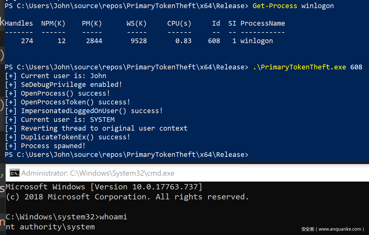 图. 从winlogon.exe中窃取SYSTEM令牌