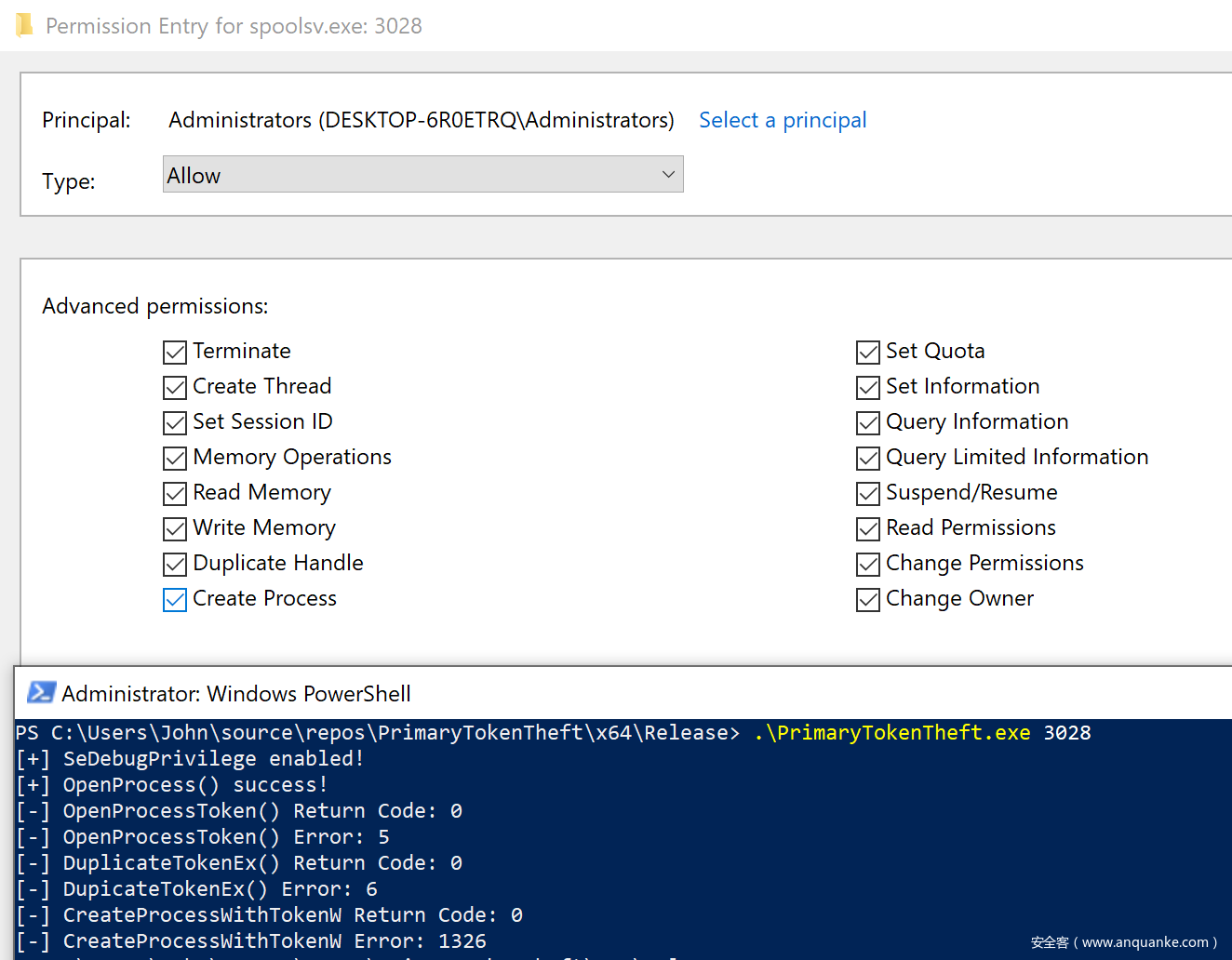 我试着在spoolsv.exe上应用所有权限,然后尝试窃取访问令牌。不幸的是,这种方法并不能弹出SYSTEM命令行窗口。