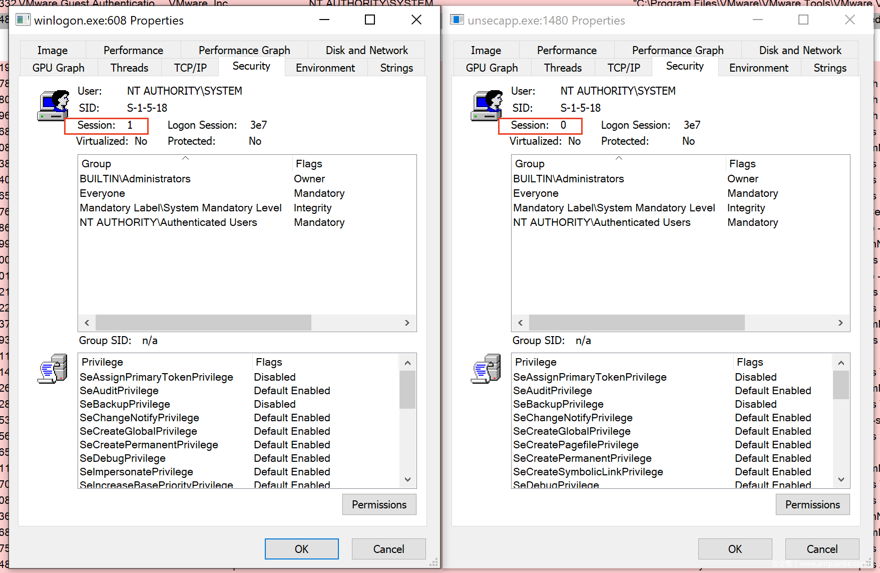 图. winlogon.exe及unsecapp.exe对应的TokenOwner字段