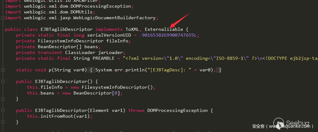 weblogic.jar!weblogicservletejb2jspddEJBTaglibDescriptor.class这个类继承自javaioExternalizable