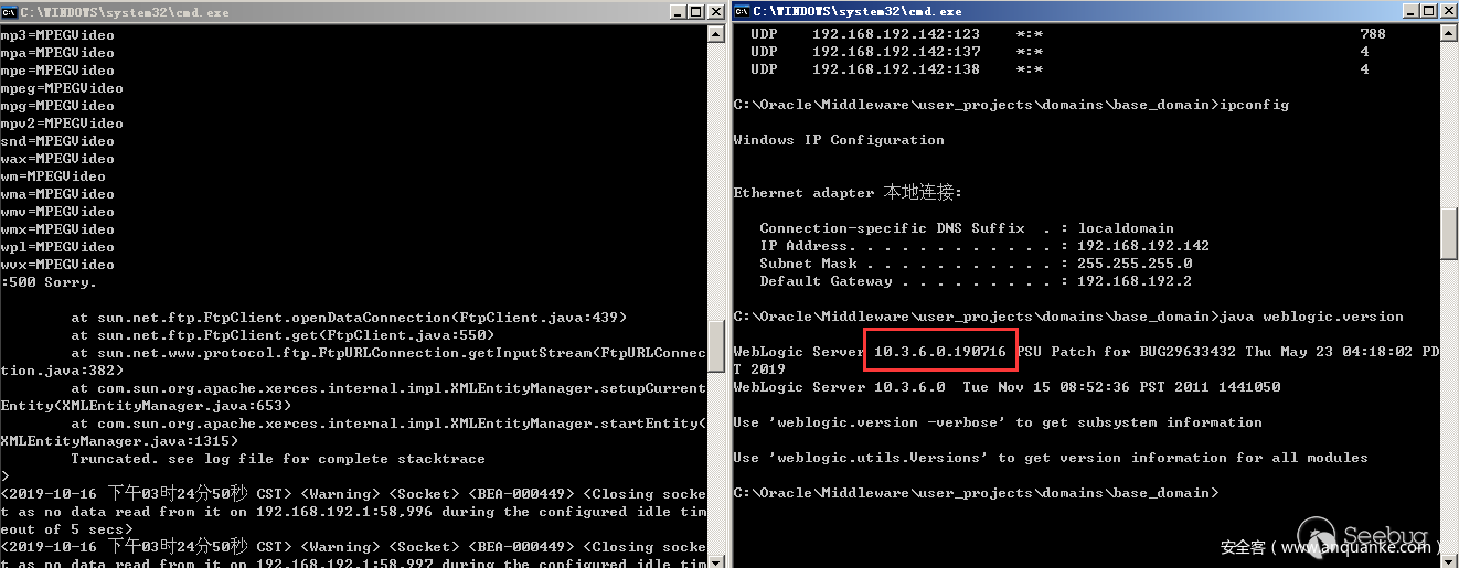 - WebLogic 10.3.6.0.190716(安装了19年7月补丁)