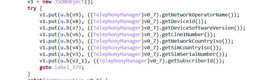 3)获取用户IMEI、手机号码、运营商类型等信息,用来区别用户的唯一性。