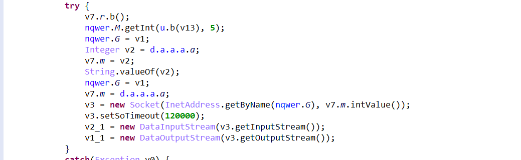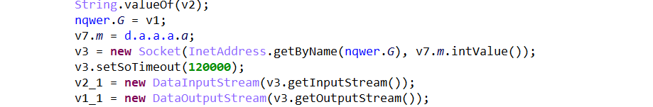 2)启动线程连接服务器,与服务器进行socket通信,建立与服务器的链接。之前样本与服务器通讯的信道未加密,而最新发现的样本与服务器通信的信道采用的AES加密的方式加密。