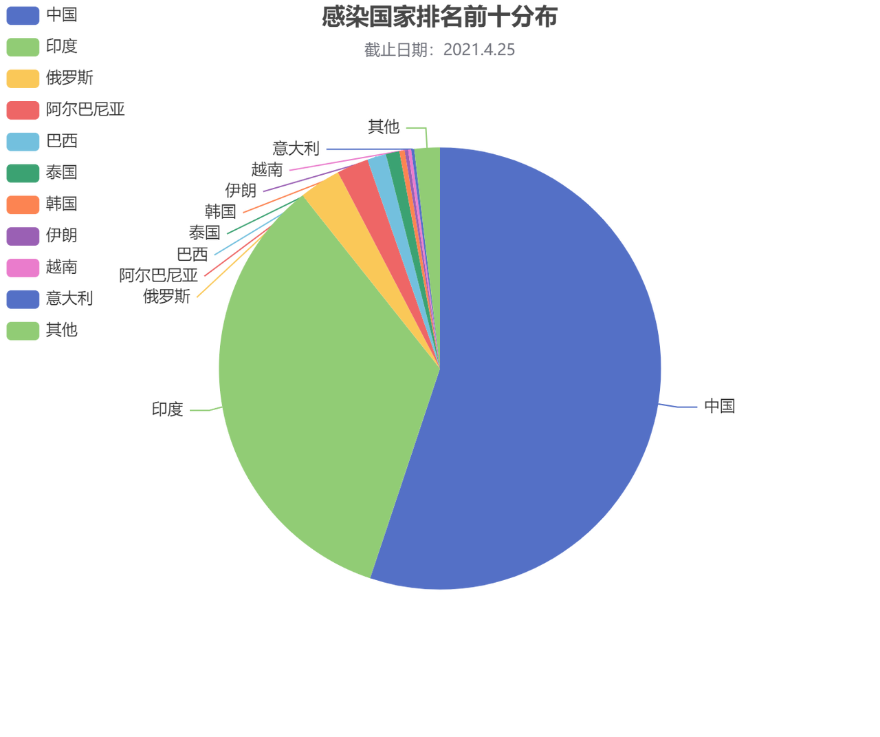 图1. 感染国家排名前十分布