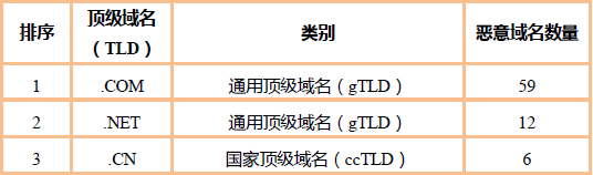 表 2: 2017 年 10 月活跃恶意域名所属顶级域名