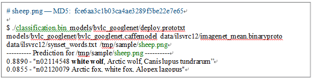 Caffe的深度学习应用认为上面的图片是 狼 ! (图片识别程序输出如下。 TensorFlow 的例子结果也是狼!)