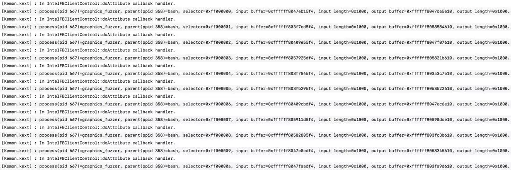 如果想深入研究 macOS、iOS 系统沙箱的设计与实现,也许这是一个好的起点。另外一个值得展开的细节是,在转储、遍历系统数据结构之前,我们需要先持有数据结构对应的保护锁,而 Mandatory Access Control 不会为第三方导出私有的互斥锁,那么如何正确持锁便成了一个难题。我通过阅读 XNU 的源代码找出了解决方案,具体实现请参阅我的 Kemon 代码。 在 8 月 12 日的 DEF CON 26 黑客大会上,我着重向观众们介绍了 Kemon 的另一个应用:内核模糊测试器。通过使用自己开发的模糊测试器,去年我发现了 macOS 显卡驱动的大量漏洞,例如:CVE-2017-7155、CVE-2017-7163、CVE-2017-13883,该工作获得了苹果公司的致谢 [9]。