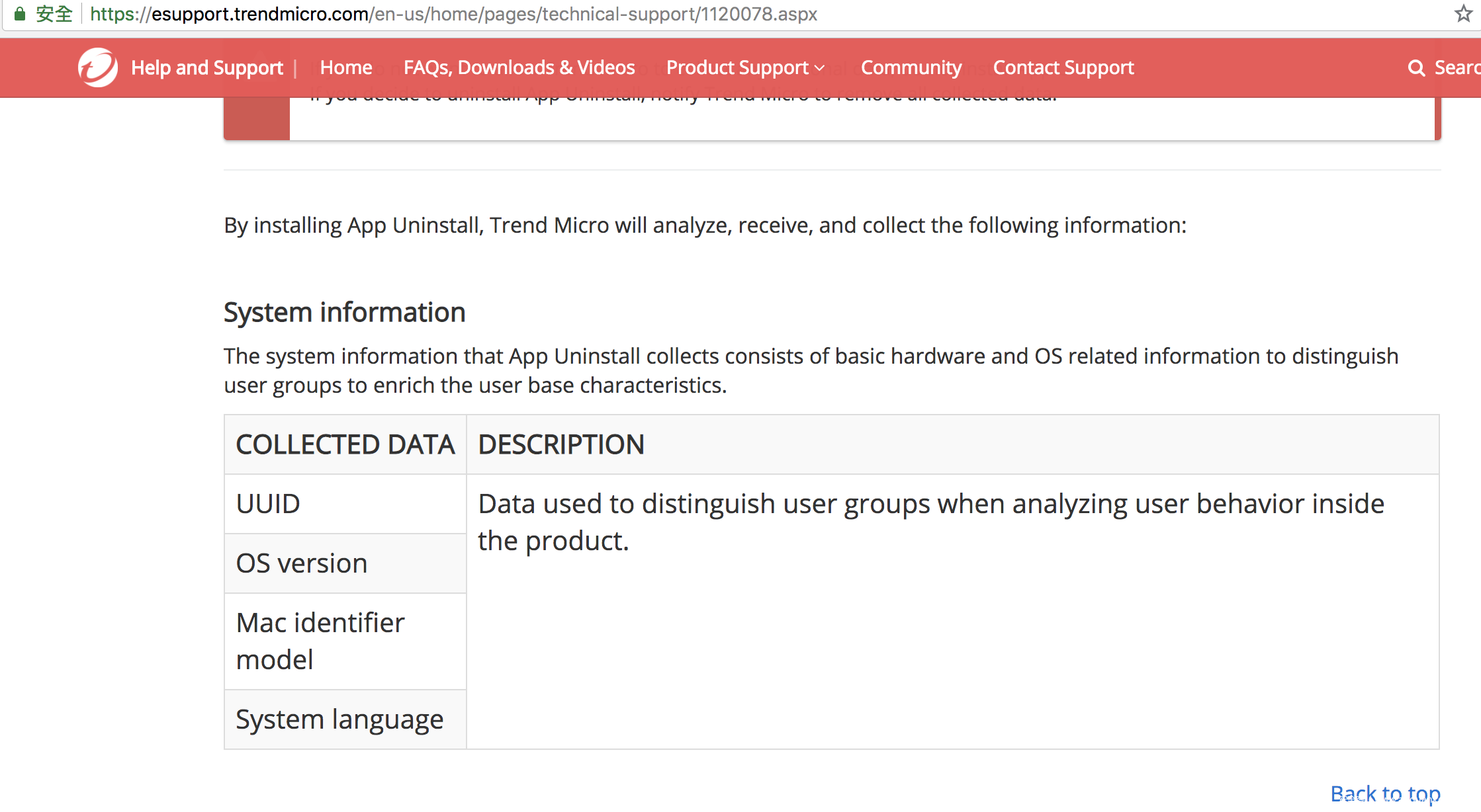 下图为趋势官网App Uninstall产品说明,里面未申明会读取浏览器等相关隐私
