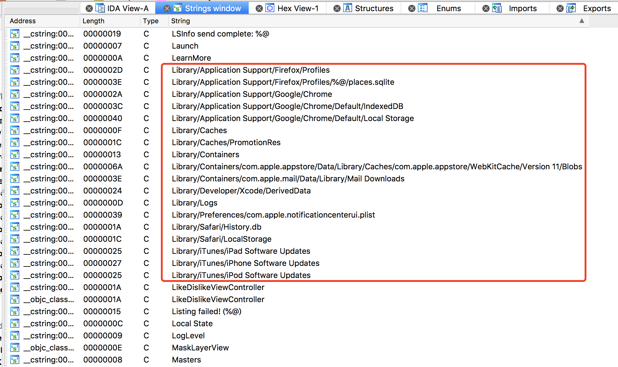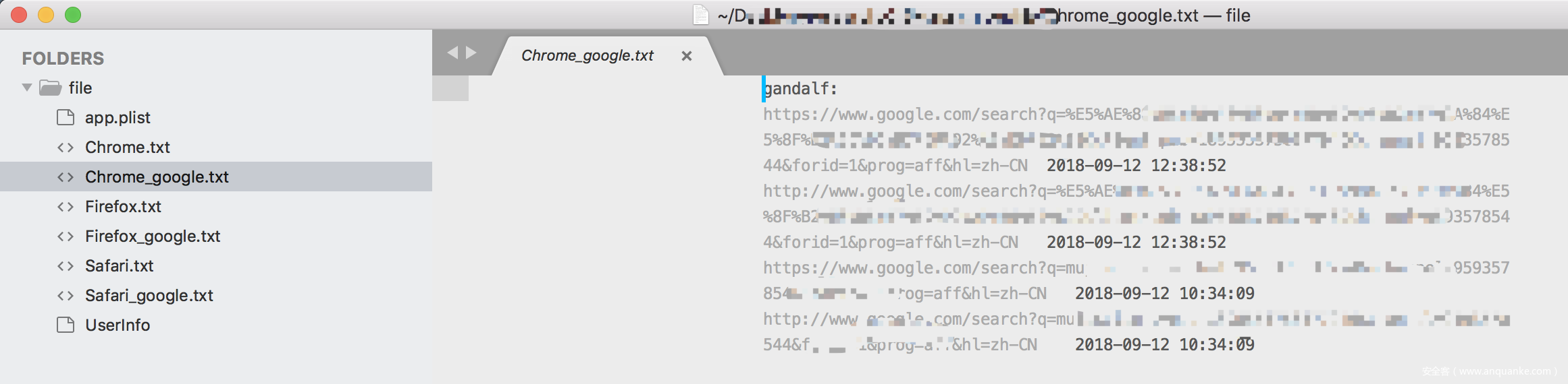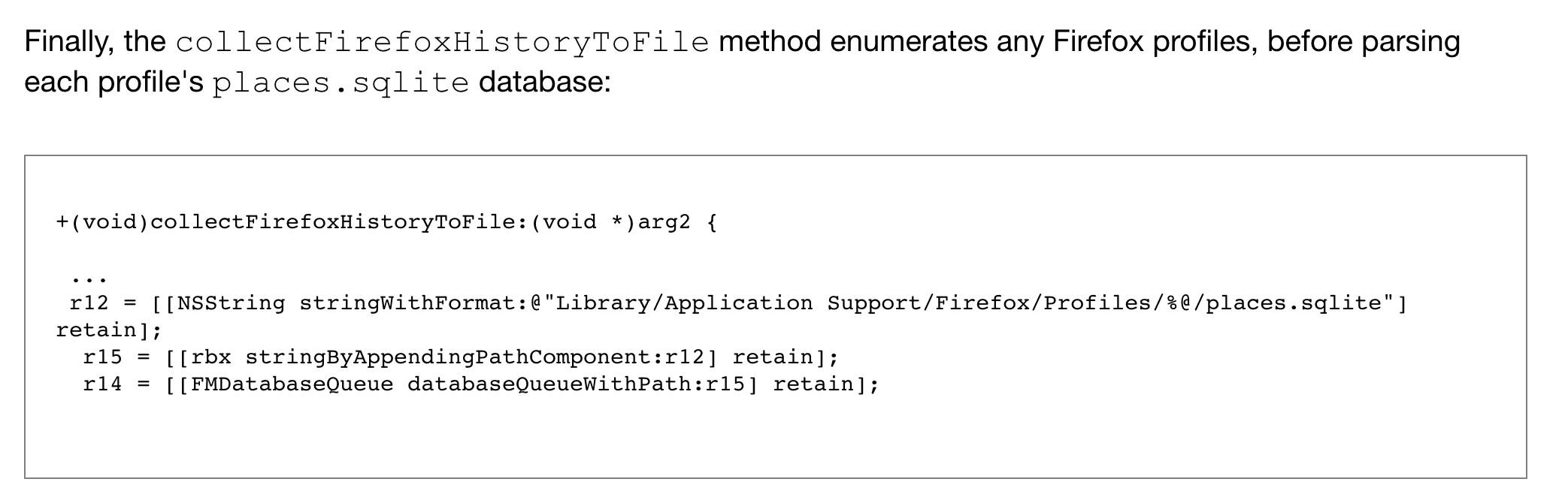 | Firefox历史记录 | Library/Application Support/Firefox/Profiles/%@/places.sqlite |