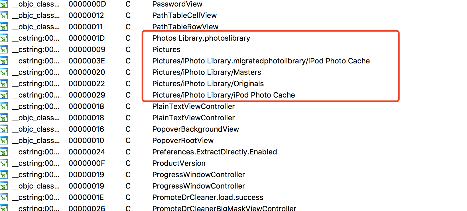 另外比较有意思的地方为,程序中还有照片库的字符串及相关代码