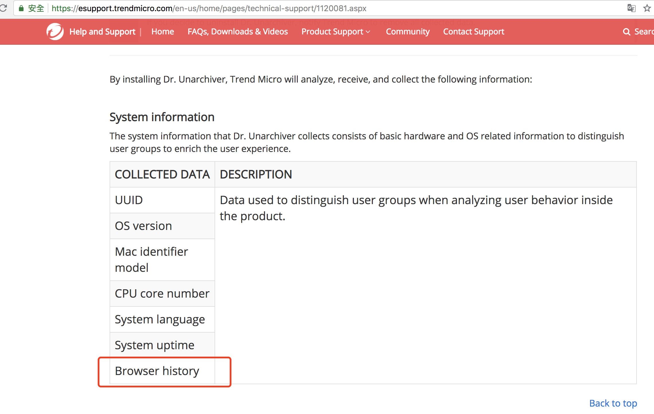 趋势官网Dr. Unarchiver产品说明里明确说明会读取浏览器记录:
