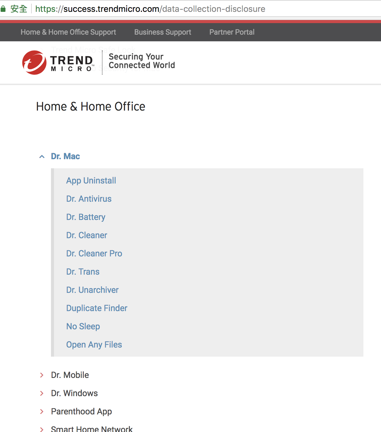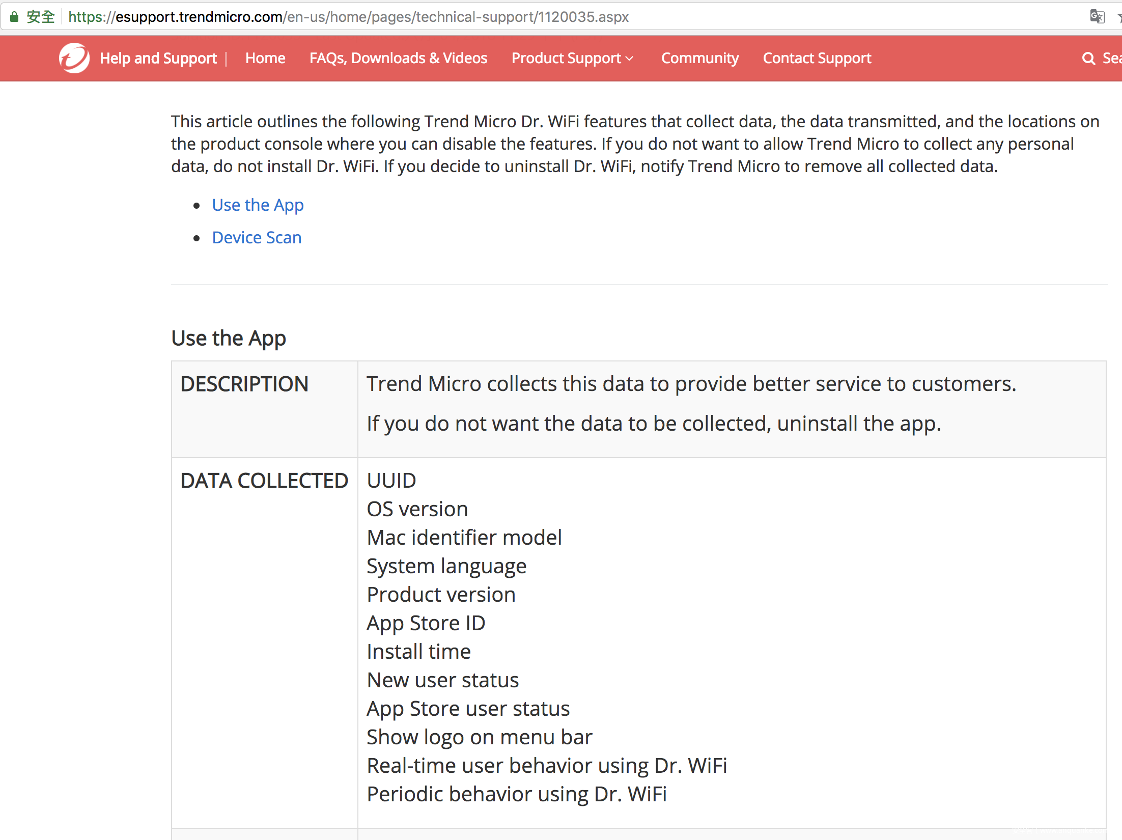 下图为趋势官网Dr. WiFi产品说明,里面未申明会读取浏览器等相关隐私