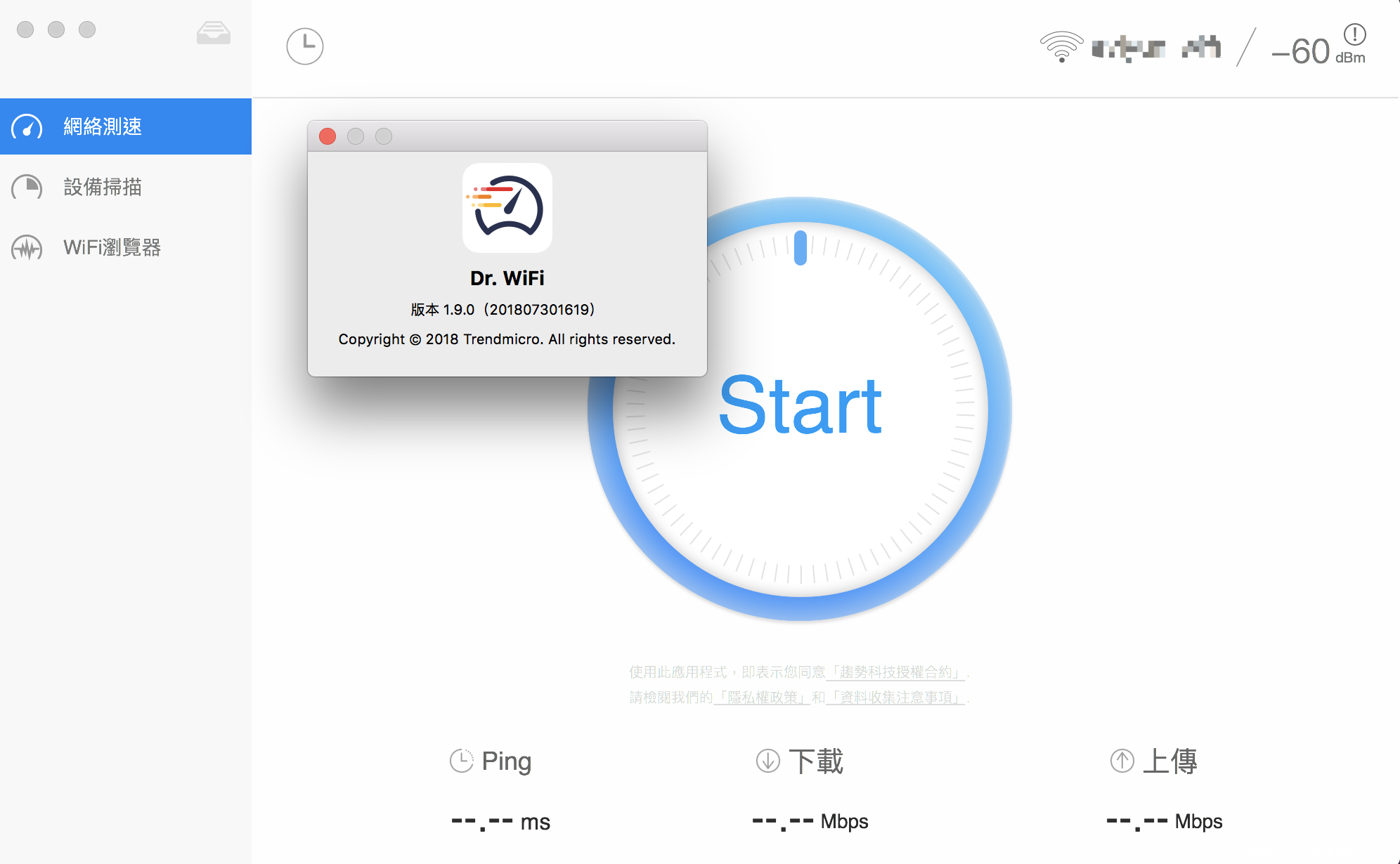 测网速大师Dr. WiFi运行界面,该app中未发现相关隐私获取代码: