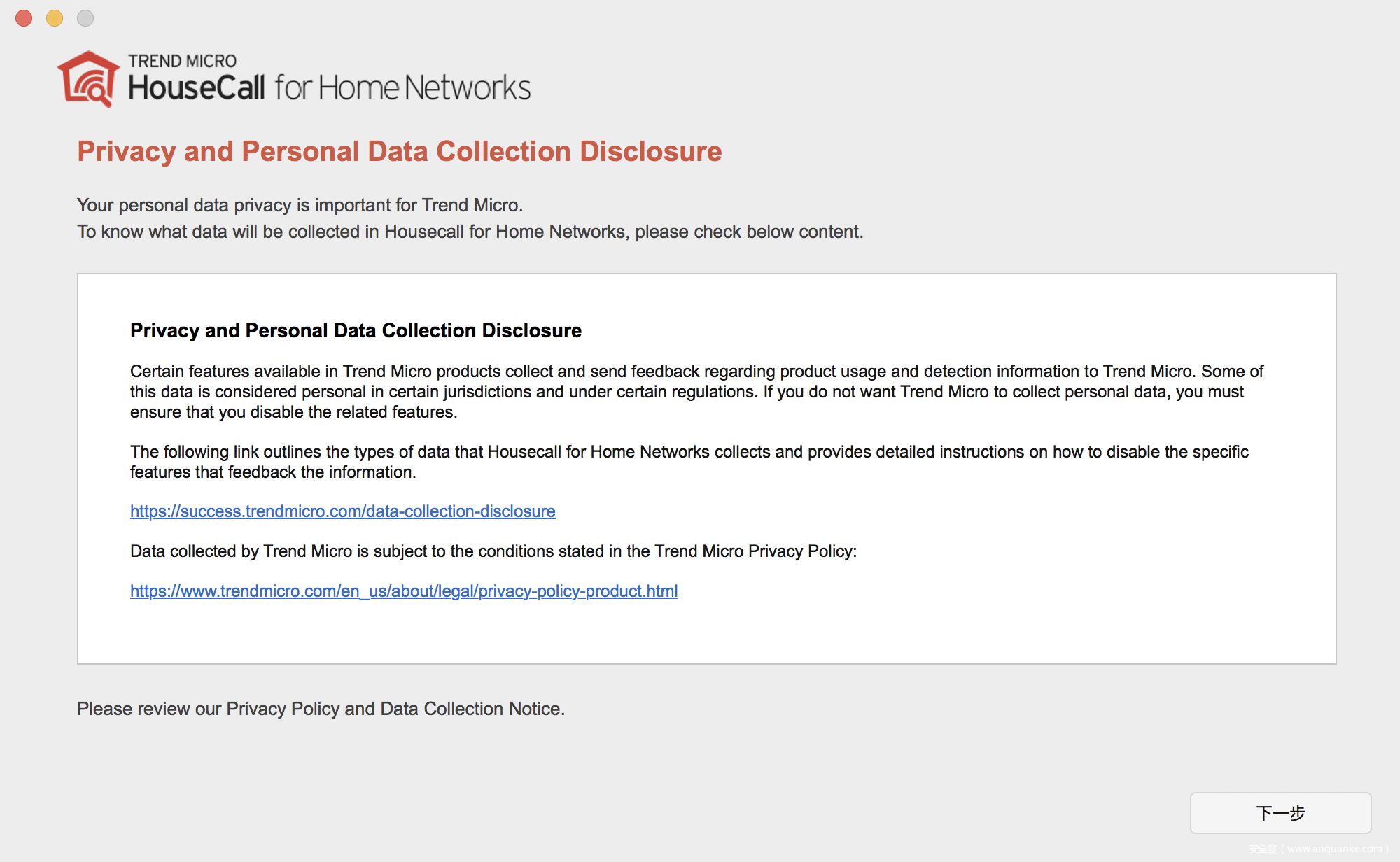 HouseCall for Home Networks (for Windows & Mac) v1.1.7 Data Collection Notice