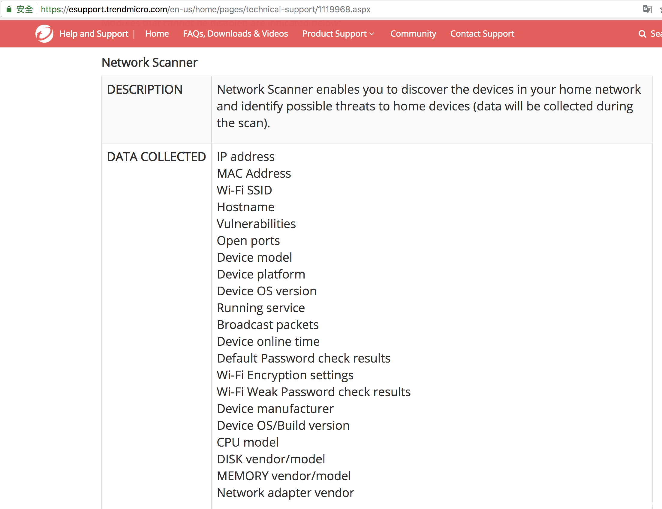 下图为趋势官网Network Scanner产品说明,里面未申明会读取浏览器等相关隐私