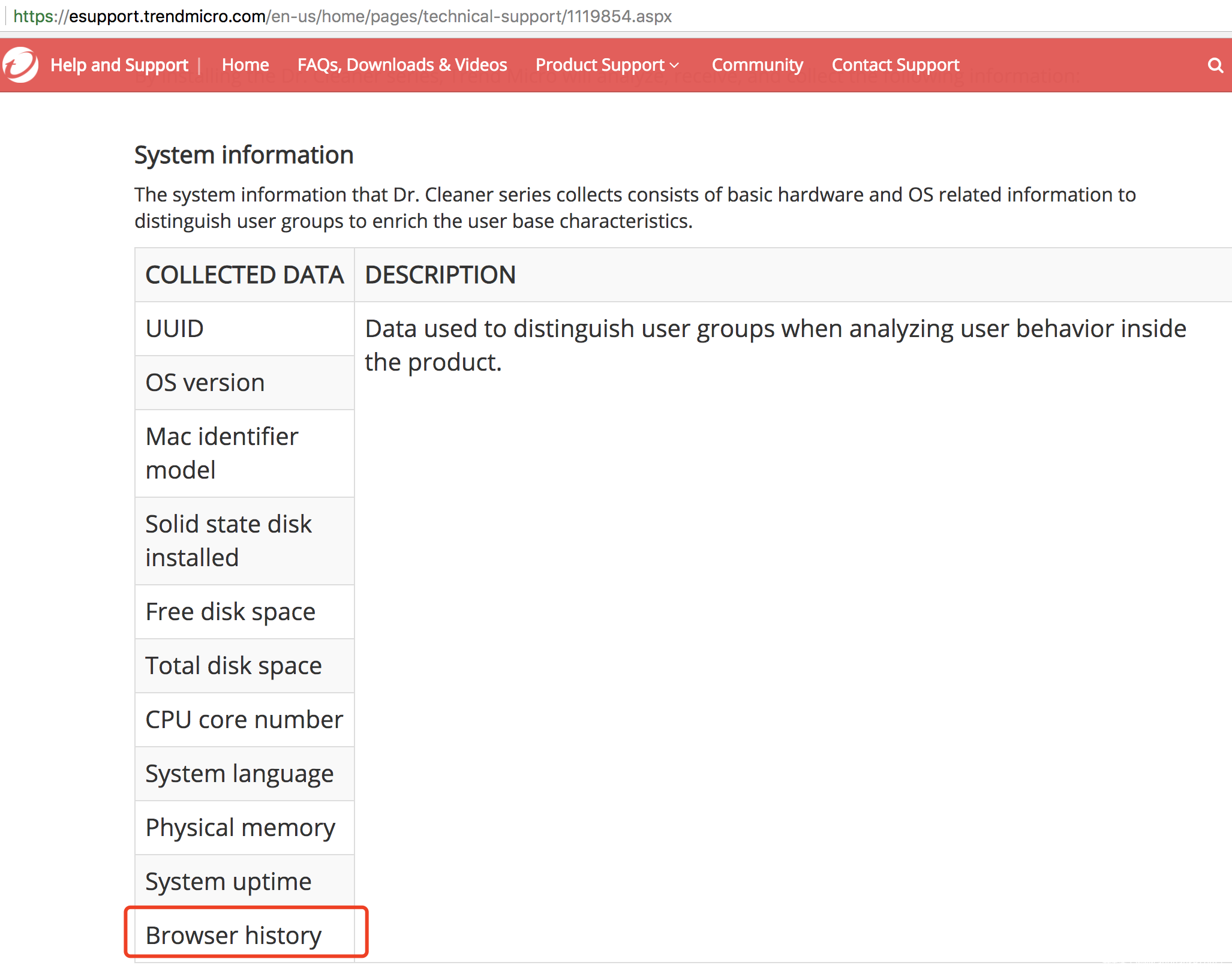 下图为趋势官网Dr. Cleaner产品说明,里面明确申明会读取浏览器记录等隐私
