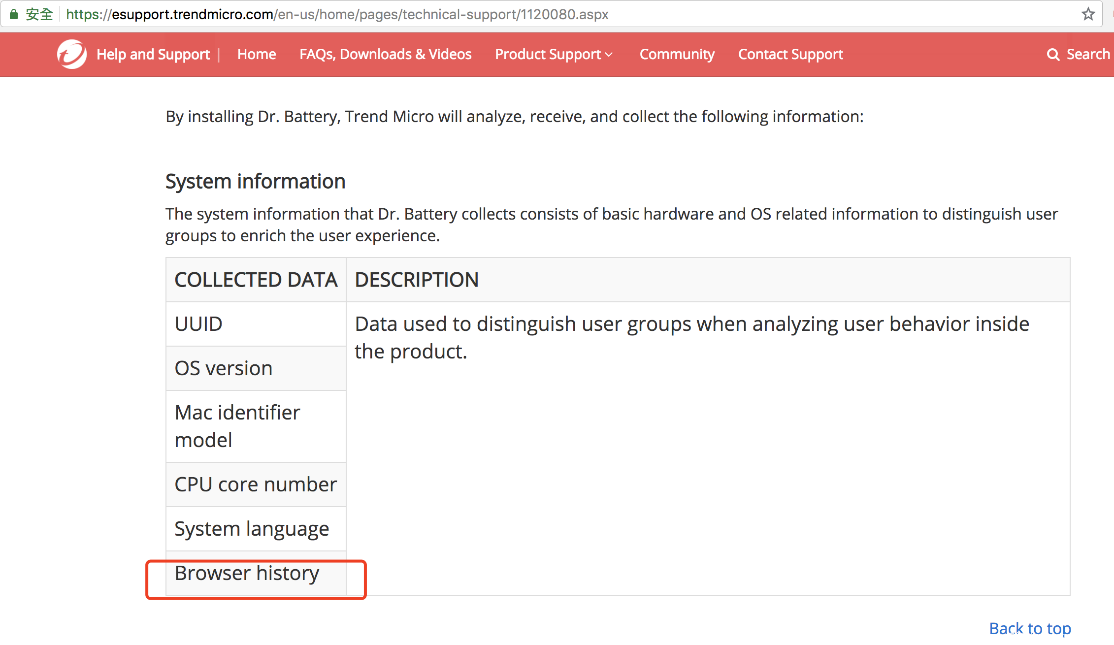 下图为趋势官网DrBattery产品说明,里面明确申明会读取浏览器记录等隐私