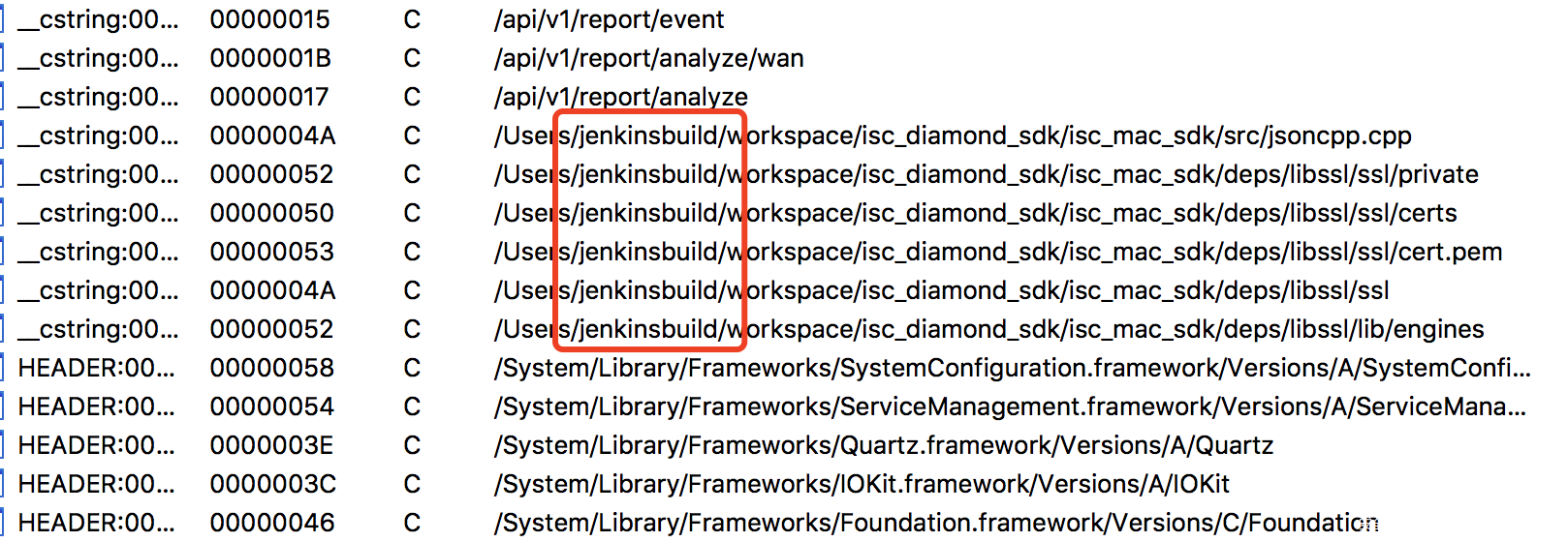 在溯源过程中通常会参考绝对路径里的username,但这些app中均只有“autobuild”和“jenkinsbuld”两个id,开发者对自我有一定的隐藏意识: