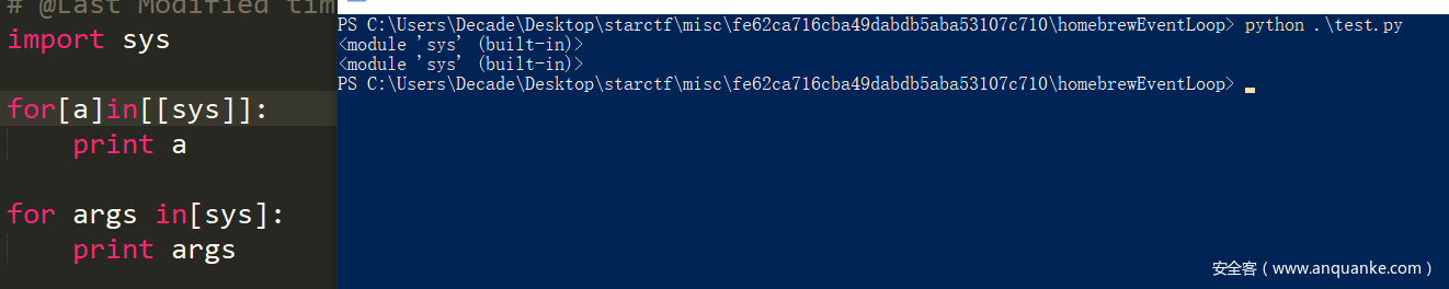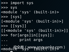 一针见血,这里a竟然被覆盖了。所以上面不能把args换成别的字符,原因就在于此。可能又会有人问,这一句的作用是为啥?就算是覆盖了,上面已经通过列表生成器重载了sys,然而神奇的是这里并没有。