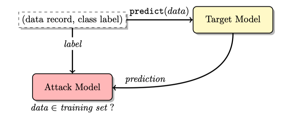 成员推理攻击(Membership Inference Attacks)是指给定数据记录和模型的黑盒访问权限,判断该记录是否在模型的训练数据集中。