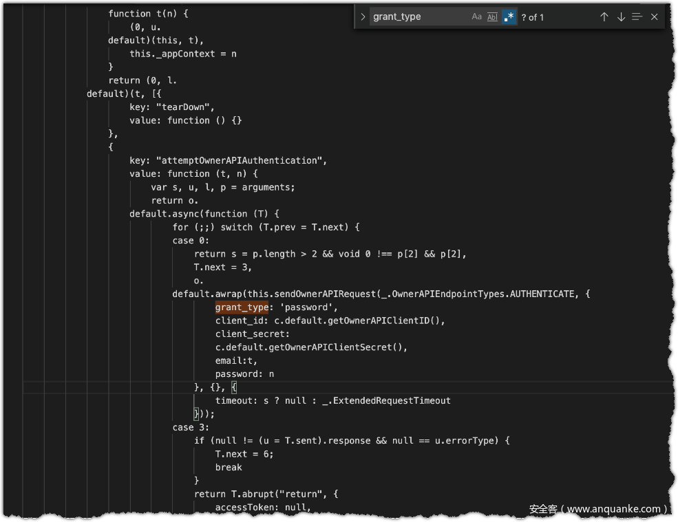 查了下资料,oauth支持5类 grant_type 。除上述用到的外,还有password模式。而公开的api就是这种模式。那么既然支持这种模式,请求的参数字段和内容又怎么来的呢?新版本的APP里没有这种模式,陷入沉思中。片刻后,决定尝试下载老版本APP去分析下,通过搜索引擎找了3.8.5的老版本。反编译,搜索grant_type,结果眼前一亮,老版本的只有password模式。而且参数也写的非常明显了。