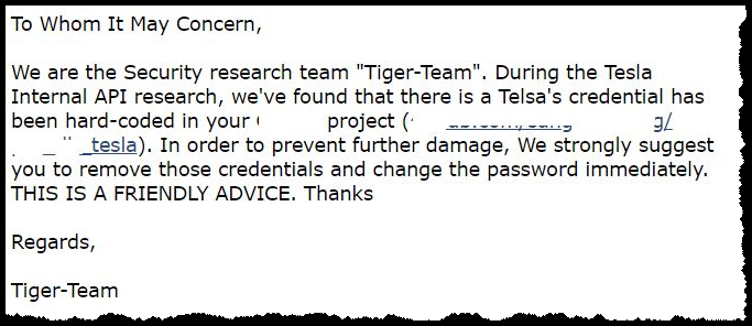 本着负责任的态度,Tiger Team第一时间向泄漏账号的人发送了邮件。截止到目前,Tiger Team仍未收到回复的邮件。Tiger Team会持续跟进该事情进展,并会及时更新至本文。注:本文分析是利用自己的账号进行,意外获取他人账号只是一个小惊喜。