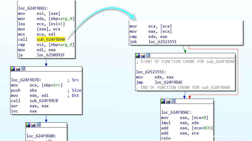 重新设断bp wwlib!DllGetClassObject+0x50e6 ".if(ecx=7c38bd68){}.else{gc}",断下之后跟进到其计算Dst Address函数: