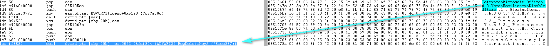 将1号对象加入后存为RTF文档,重新载入分析,bp 0x7c376fc8设断: