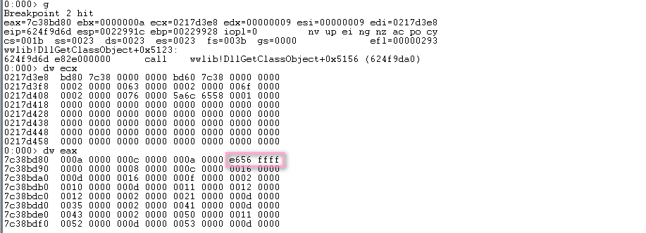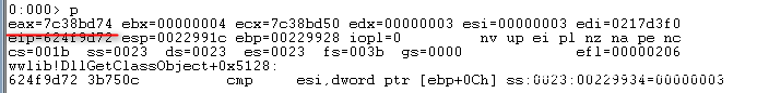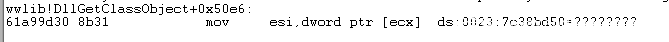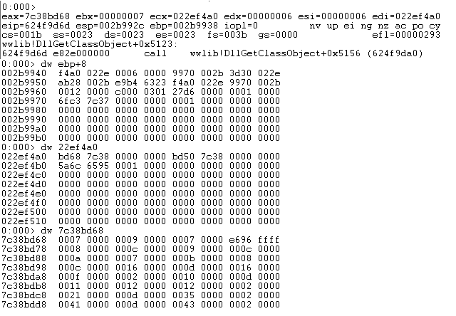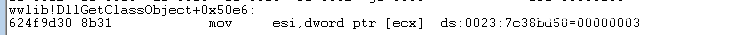 设断bp wwlib!DllGetClassObject+0x50e6 ".if(ecx=7c38bd50){}.else{gc}":