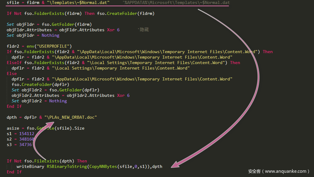 读取~$Normal.dat第一部分内容并解密,写入%USERPROFILE%\AppData\Local\Microsoft\Windows\Temporary Internet Files\Content.Word\PLAs_NEW_ORBAT.doc: