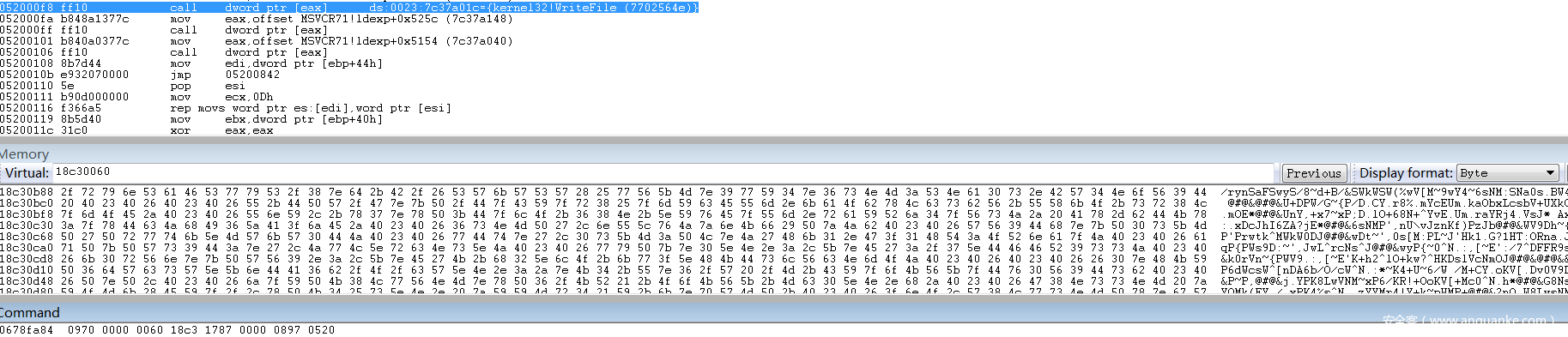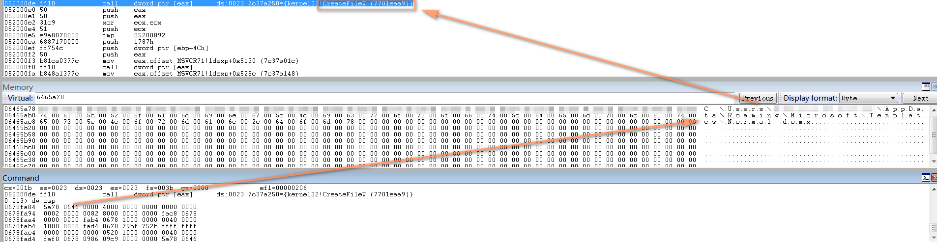 后续仍有数次解密Shellcode过程,不再一 一列出。于C:\Users\xxx\AppData\Roaming\Microsoft\Templates目录下创建文件: