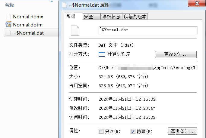 之后于相同目录下创建~$Normal.dat并写入内容: