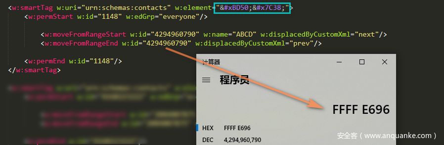 通过rtfobj.py -s 2将2号对象存为一Word文档,查看其word目录下document.xml: