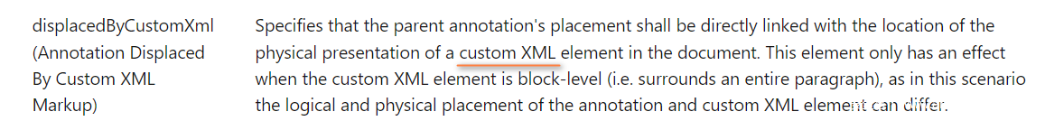 - Microsoft Docs——displacedByCustomXml(https://docs.microsoft.com/en-us/previous-versions/office/developer/office-2010/cc847826(v=office.14)?redirectedfrom=MSDN)