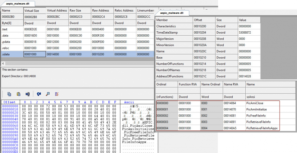 图11. 借助DLL旁路加载技术运行的stage 4恶意软件会伪装合法程序的导出表以规避检测
