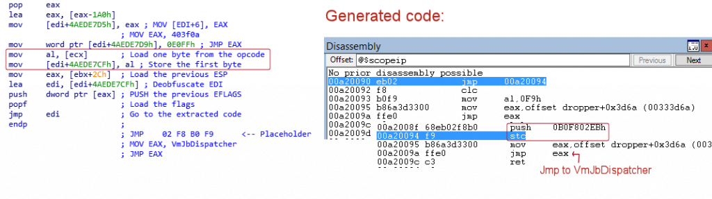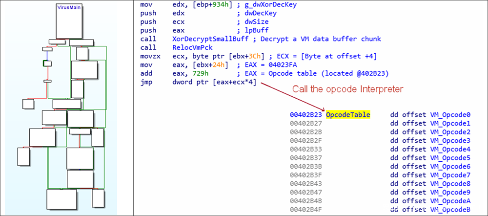 图6. 恶意软件开发者在VM操作码调度器中使用的一种混淆技巧