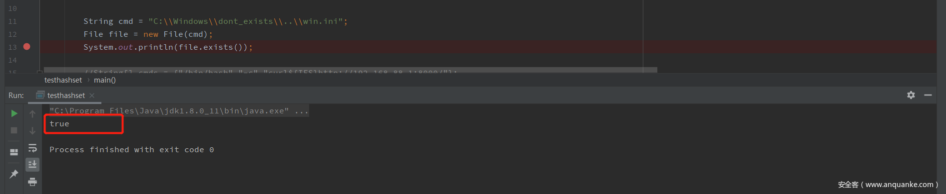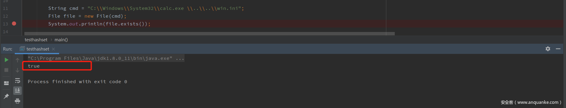 上面我们说了new File(pathname),pathname 是允许带空格的。在利用上面WIndows环境下的特性,把cmd设置成C:\Windows\System32\calc.exe \..\..\win.ini