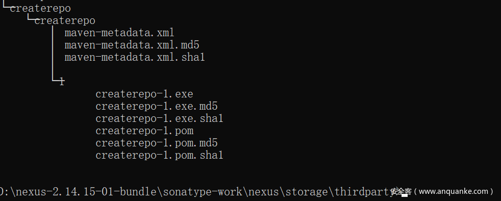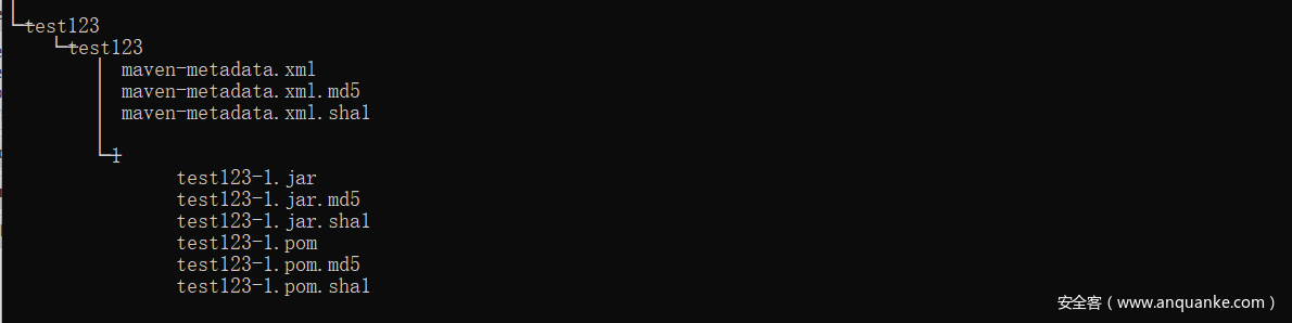 当Group设置为test123,Artifact设置为test123,Version设置成1,当上传Artifacts的时候,是会在服务器中创建对应的目录的。对应的结构如下