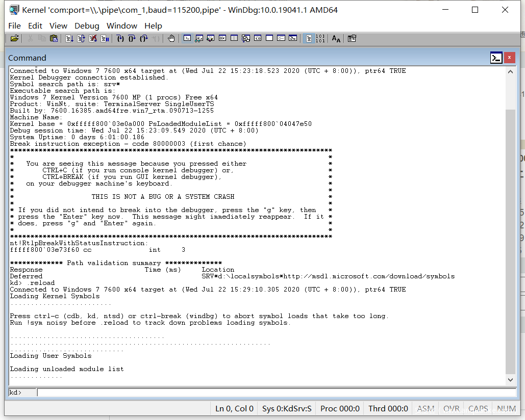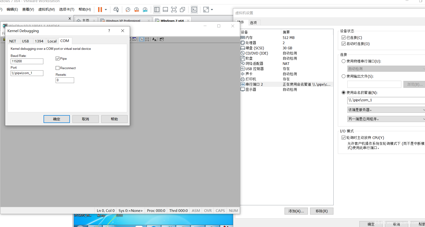 也就是STATUS_SUCCES,没有debugger注册表键值的时候NtCreateUserProcess内核返回值是0,现在我们大致可以猜测内核里也对这个IFEO位置的注册表键值做了处理,为了搞清楚内核如何处理,直接上windbg用虚拟机进行双机调试,调试内核。