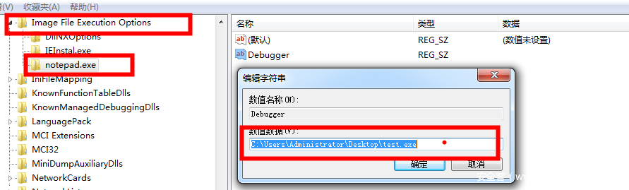 编译后,我们可以修改注册表演示下IFFO**HKEY_LOCAL_MACHINE\SOFTWARE\Microsoft\Windows NT\CurrentVersion\Image File Execution Options\{name of the executable}**