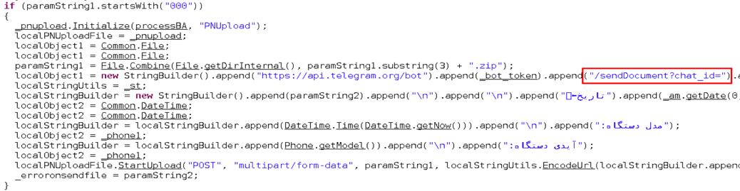 图3 :使用SendDocument Telegram bot API方法的代码片段