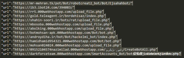 下面显示了我们发现的仅有几个Webhook的示例。hxxps:// mr-mehran [.] tk / pot / Bot /托管了近6500个机器人,但是,我们无法确认它们是否全部用于恶意目的。